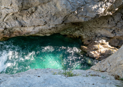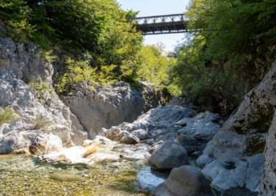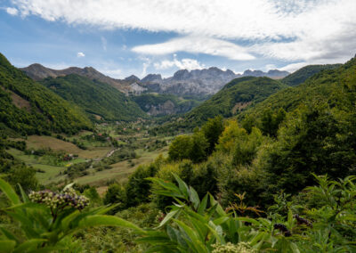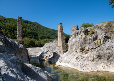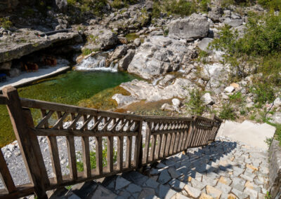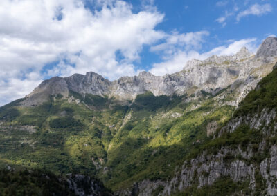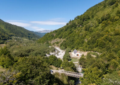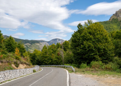 Albania wita nas pięknym wodospadem z jakimiś starymi zabudowaniami. Prawdziwy rwący górski potok huczy pięknie błękitną wodą. Rozbija się o białe skały i niknie w głębokim jarze. Nad nim wąski most, taki drewniany. Wszystko w scenerii wysokich postrzępionych szczytów albańskich alp i bujnej roślinności. Tutaj jeszcze jest lato. Wszystko jest zielone. Na jesienne kolory trzeba jeszcze poczekać.