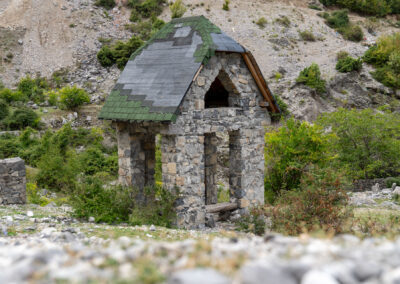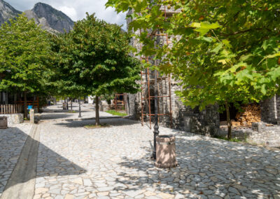 Zupełnie przez przypadek zatrzymuję się w wiosce Tamare. Okazuje się, że to jedna z popularnych atrakcji. Każdy dom jest zbudowany w ten sam sposób i z tego samego materiału. Wygląda jak Roblox na żywo. Ślicznie to wygląda. Jem tutaj lunch, który kosztuje mnie więcej niż się spodziewałem (75 pln za posiłek bez drugiego dania). Wynagradzają mi to widoki i poczucie, że jestem w prawdziwej podróży. Albania. Tak daleko od Polski już dawno nie byłem.