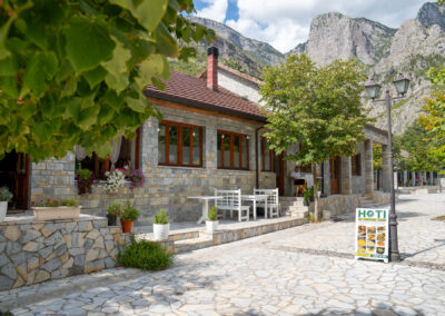 Przyjeżdżam do Domus Komanesse trochę po 18:00. Wita mnie przemiła Pani gospodyni, Entela. Świetnie mówi po angielsku, jak większość Albańczyków. Jest nauczycielką geografii. Wykłada na uniwersytecie. Prowadzą z mężem mały guesthouse w miejscowości Koman.