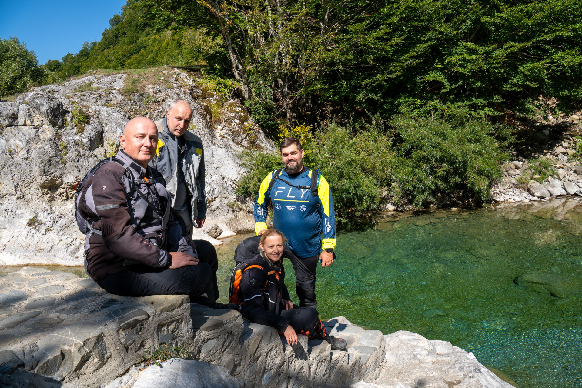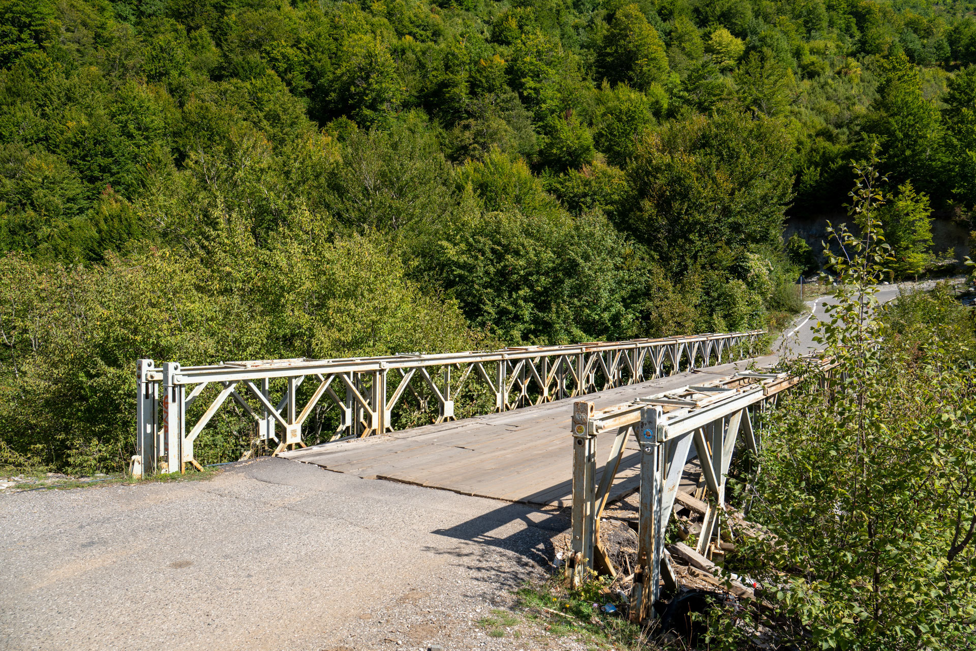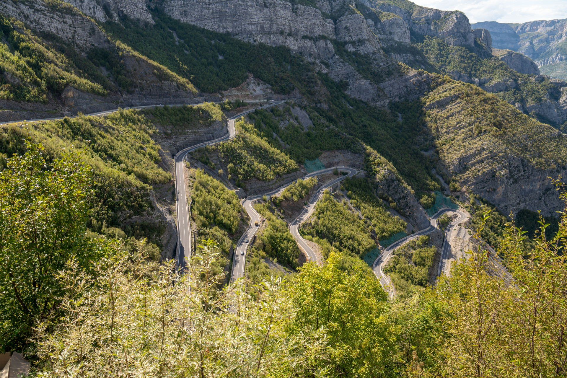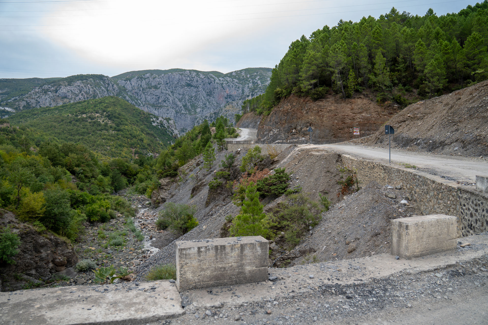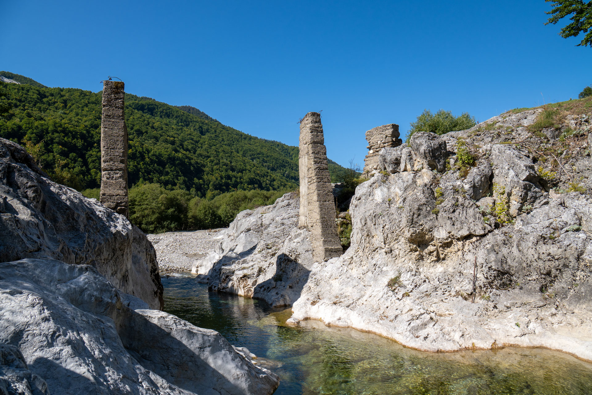 Albania wita nas pięknym wodospadem z jakimiś starymi zabudowaniami. Prawdziwy rwący górski potok huczy pięknie błękitną wodą. Rozbija się o białe skały i niknie w głębokim jarze. Nad nim wąski most, taki drewniany. Wszystko w scenerii wysokich postrzępionych szczytów albańskich alp i bujnej roślinności. Tutaj jeszcze jest lato. Wszystko jest zielone. Na jesienne kolory trzeba jeszcze poczekać.