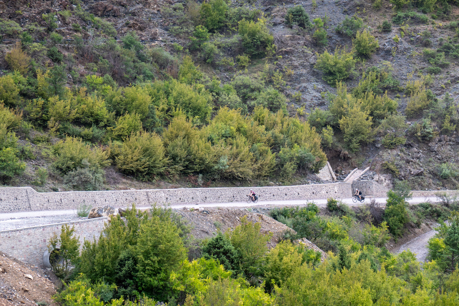 Mam około 4h do celu, ale zajmuje mi to cały dzień, bo co chwila, naprawdę, co kilka minut zatrzymuję się na foto przystanki. Latam dronem, robię zdjęcia, chłonę te piękne, dzikie krajobrazy. Prawie wcale nie ma tutaj ludzi ani zabudowań. Są góry, lasy, potoki i wijąca się droga.