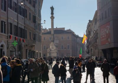 Ja jadę do miasta. Poprzedniego dnia przejeżdżaliśmy obok Hiszpańskich Schodów. Tłum był tak gęsty, że ledwo dawaliśmy radę prowadzić rowery – o jeździe nie było mowy.