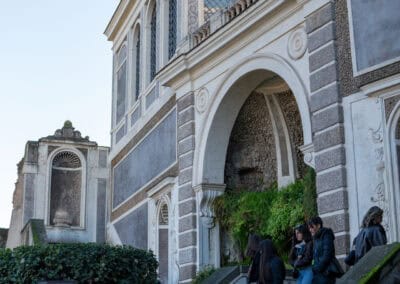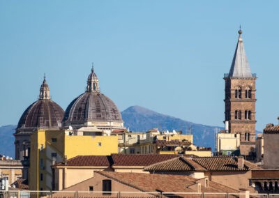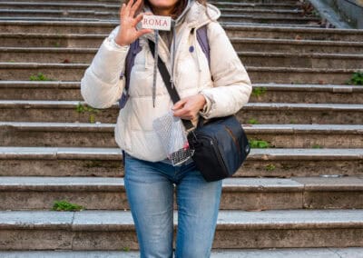 Od pierwszych minut wciąga nas w historię miejsca. Zaczyna szeroko — od historii Rzymu w ogóle. Mówi, że pod każdym kamieniem jest tu jakaś historia, a całe miasto przypomina rzymską lasagnę: warstwa na warstwie, republika, imperium, średniowiecze, nowożytność — wszystko na sobie.