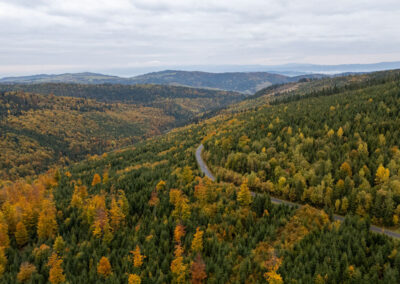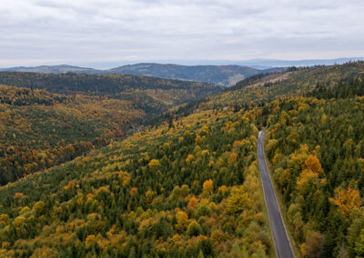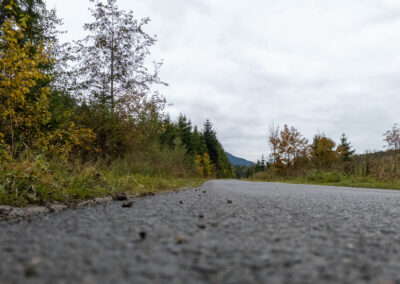 Tuż pod Nowym Targiem droga wiedzie przez las, wzdłuż Rezerwatu Bór na Czerwonem.