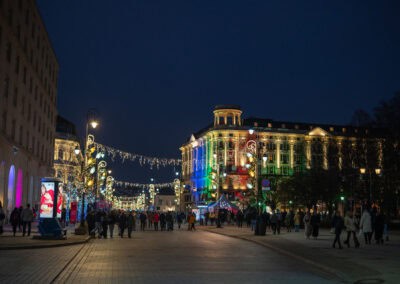 Trzeba też dodać, że Warszawa w okresie świątecznym zachwyca. Światełka, instalacje, dekoracje, jarmarczne stragany, zapach domowego smalcu, para unosząca się znad gorącej zupy serwowanej w papierowych miskach, ludzie w ludowych strojach. Trafiliśmy nawet na paradę wzorowaną na amerykańskich marching bands – młode dziewczyny maszerowały środkiem Traktu Królewskiego, wywijając buławami w rytm bębnów. Niesamowity klimat.